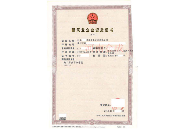 • 建筑業企業資質證書
