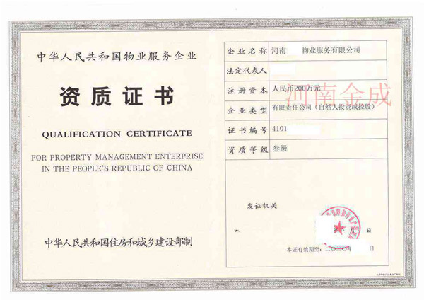 • 物業二級資質證書